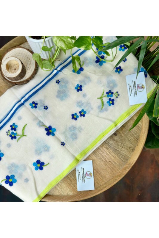 Shiuli Flower Embroidery Khadi Cotton Saree