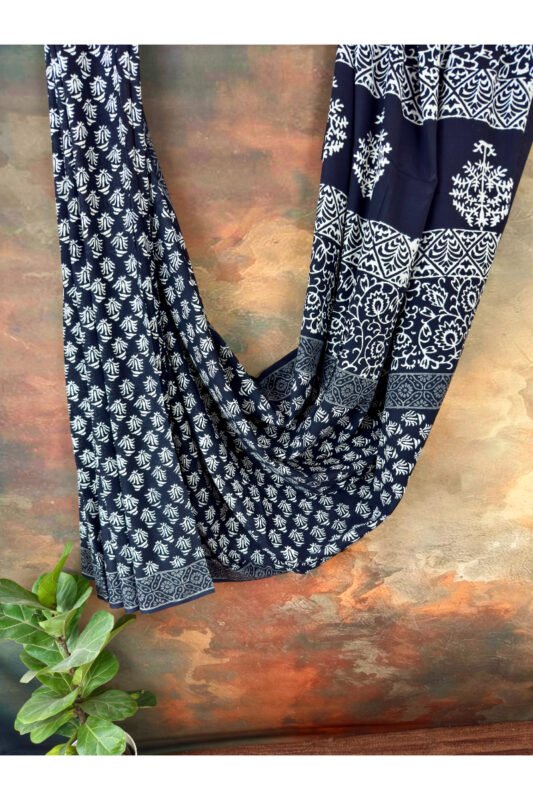 Bold and Classic Black Saree with Golden Hand Painted Golden Flowers