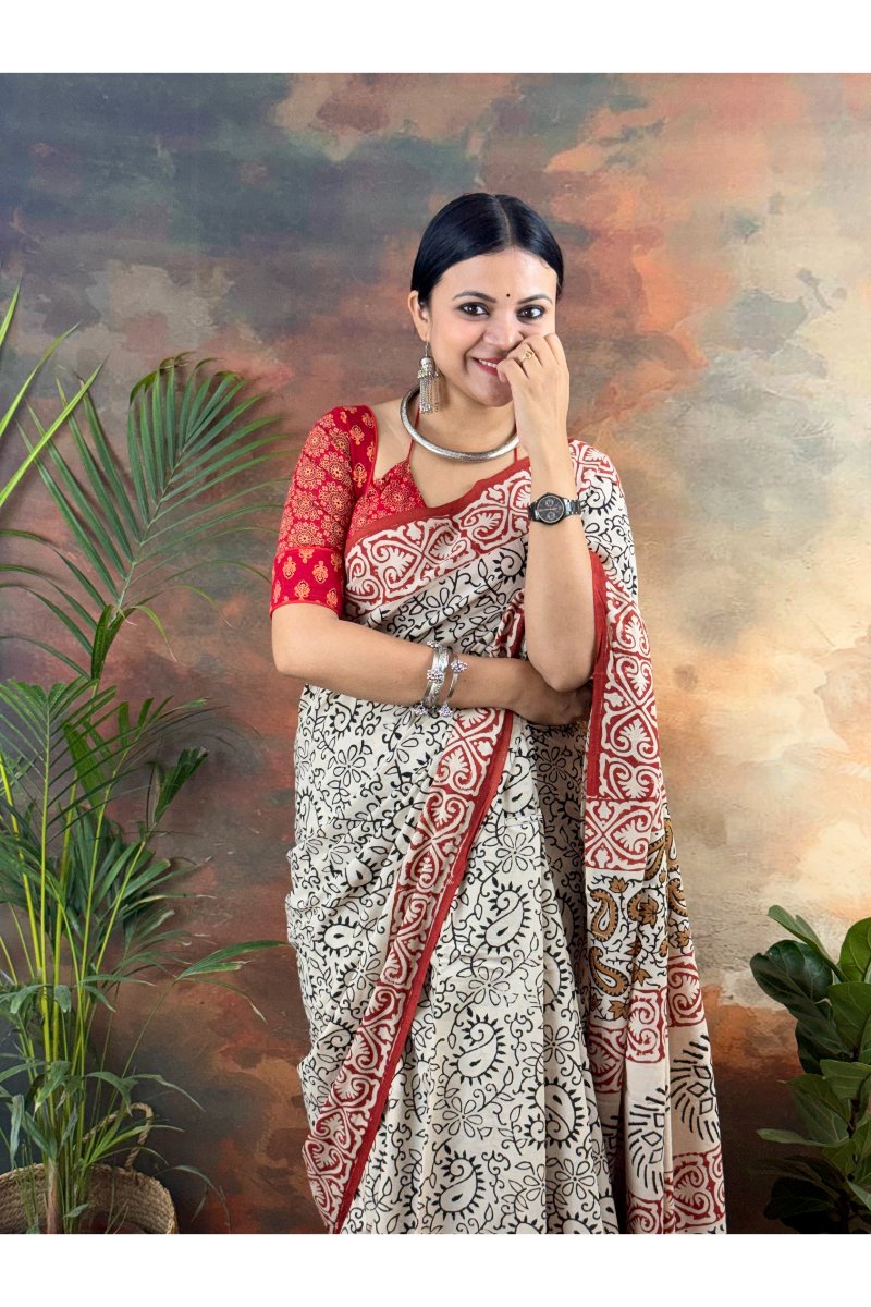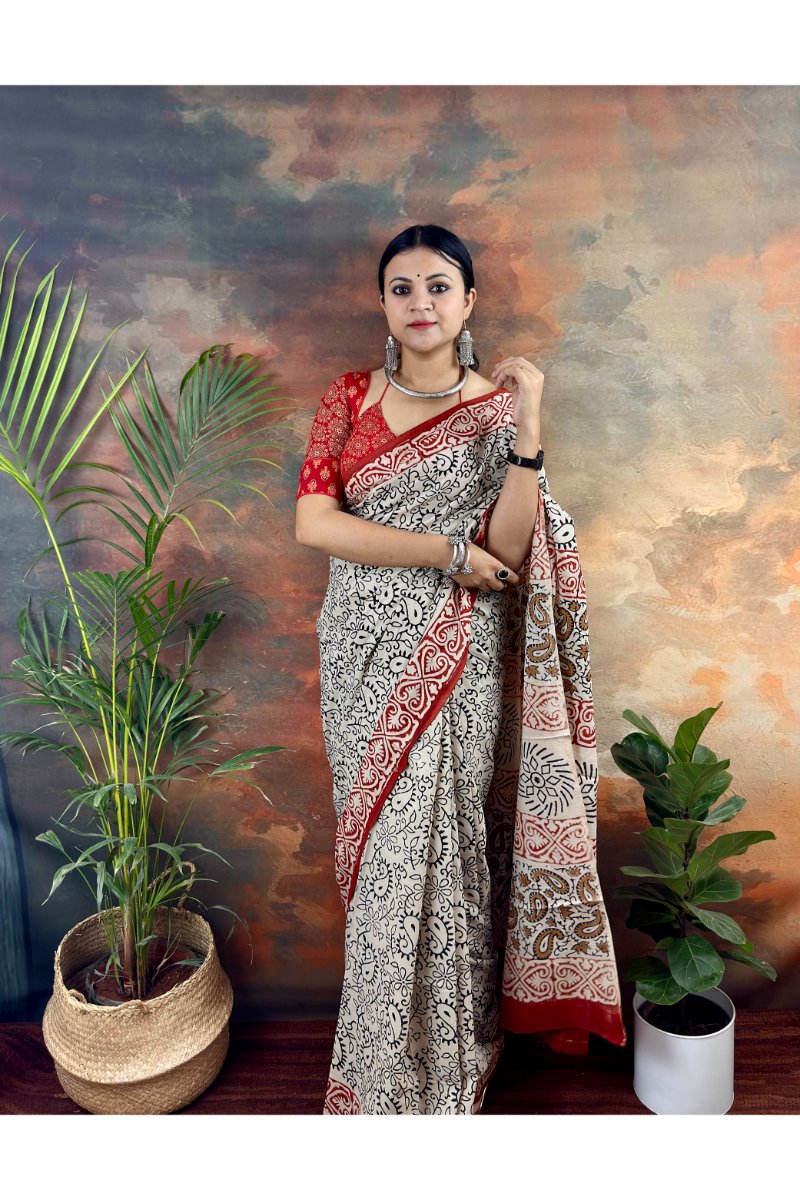 Experience timeless tradition with our pure cotton Bagru print saree, crafted for comfort and everyday grace. Made from breathable cotton, this saree is lightweight, soft on the skin, and perfect for staying cool during the summer season.
