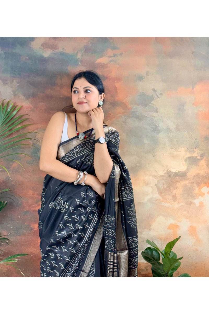 Bagru Print Maheshwari Saree