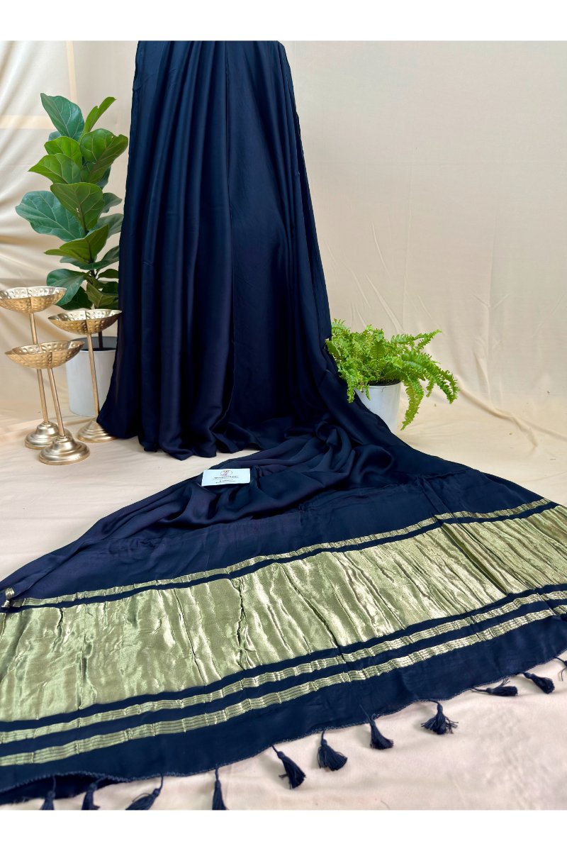 Elevate your ethnic wardrobe with this elegant Plain Modal Silk Saree, beautifully finished with a delicate tissue pallu. Crafted from pure modal silk, it drapes effortlessly with a soft sheen, while the tissue pallu adds a subtle luminous touch. Perfect for formal occasions or refined everyday wear festive wear,this timeless piece blends simplicity with sophistication.