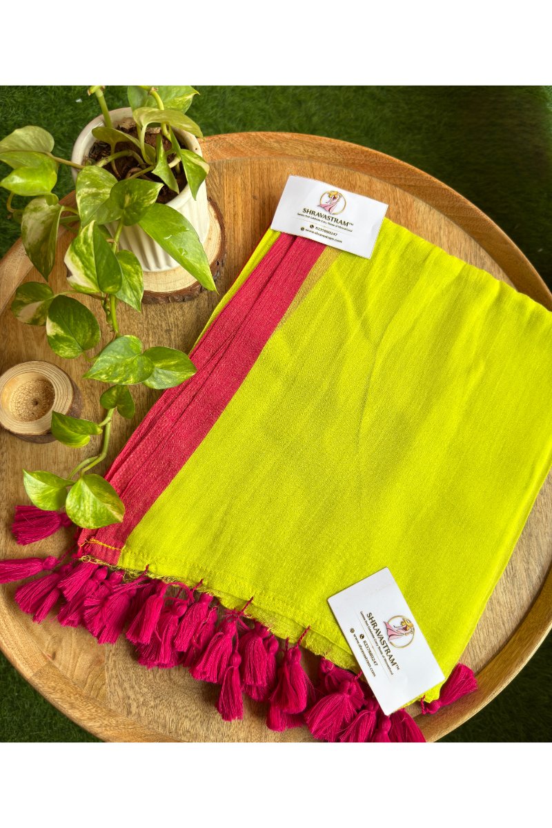 Brighten your wardrobe with this stunning solid neon mul cotton saree, designed to make a bold yet elegant statement. The vibrant neon base brings fresh, modern energy, beautifully complemented by a thin pink border running gracefully throughout the saree for a subtle contrast.
