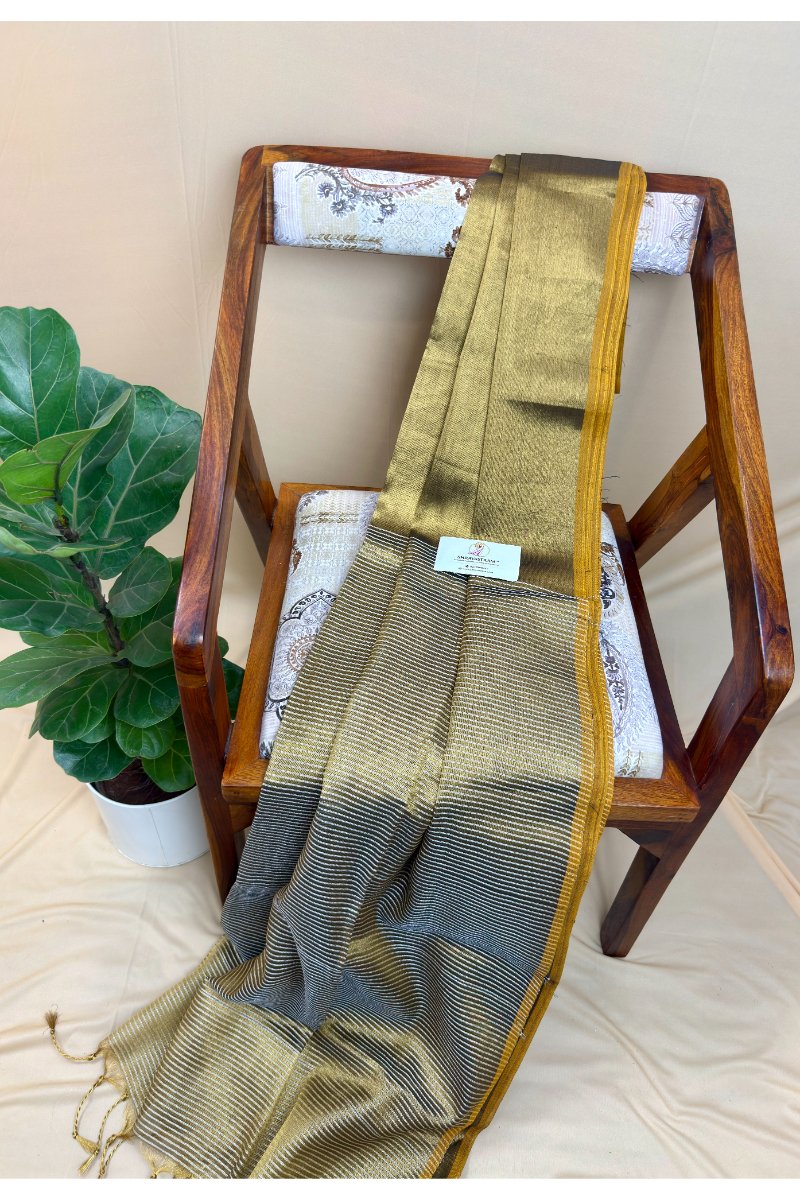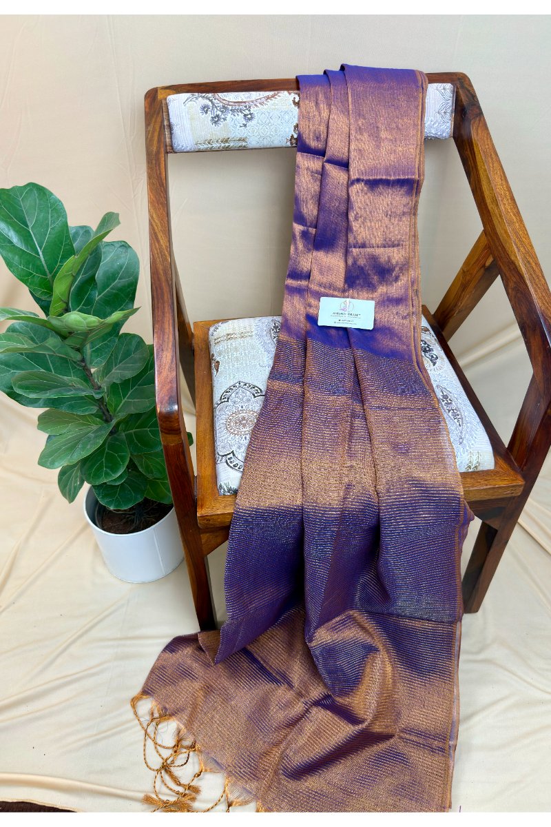 Graceful and effortlessly stylish, this Plain Tissue Raga Saree features a clean, minimal body paired with a beautifully striped pallu that adds a subtle statement touch. The soft tissue fabric offers a delicate sheen and fluid drape, making it perfect for festive occasions, parties, or elegant everyday wear.